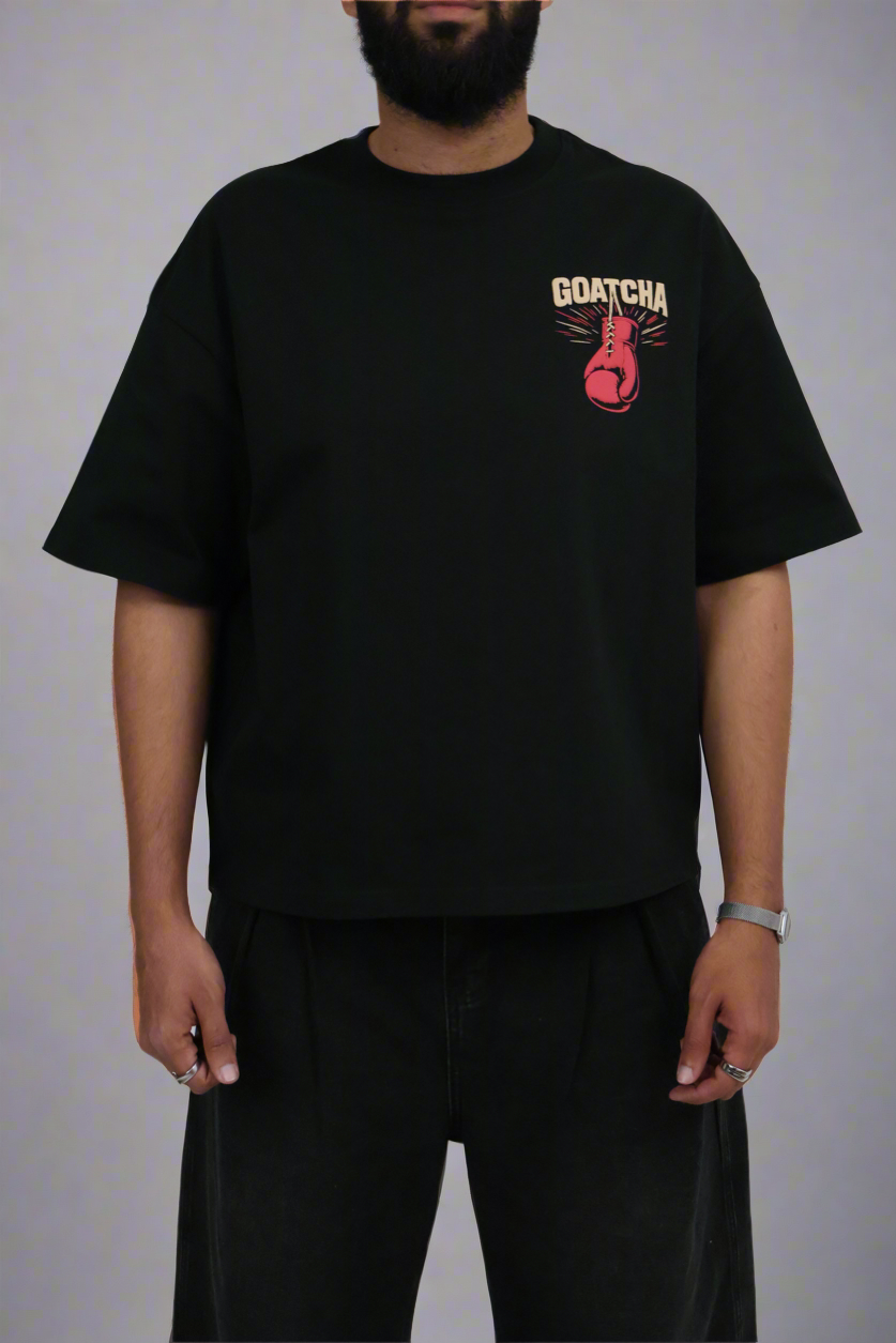 Inspired by Hajime no Ippo, this boxy-fit tee combines strength and style. The front-only graphic of a boxing glove with our GOATCHA logo is bold and powerful