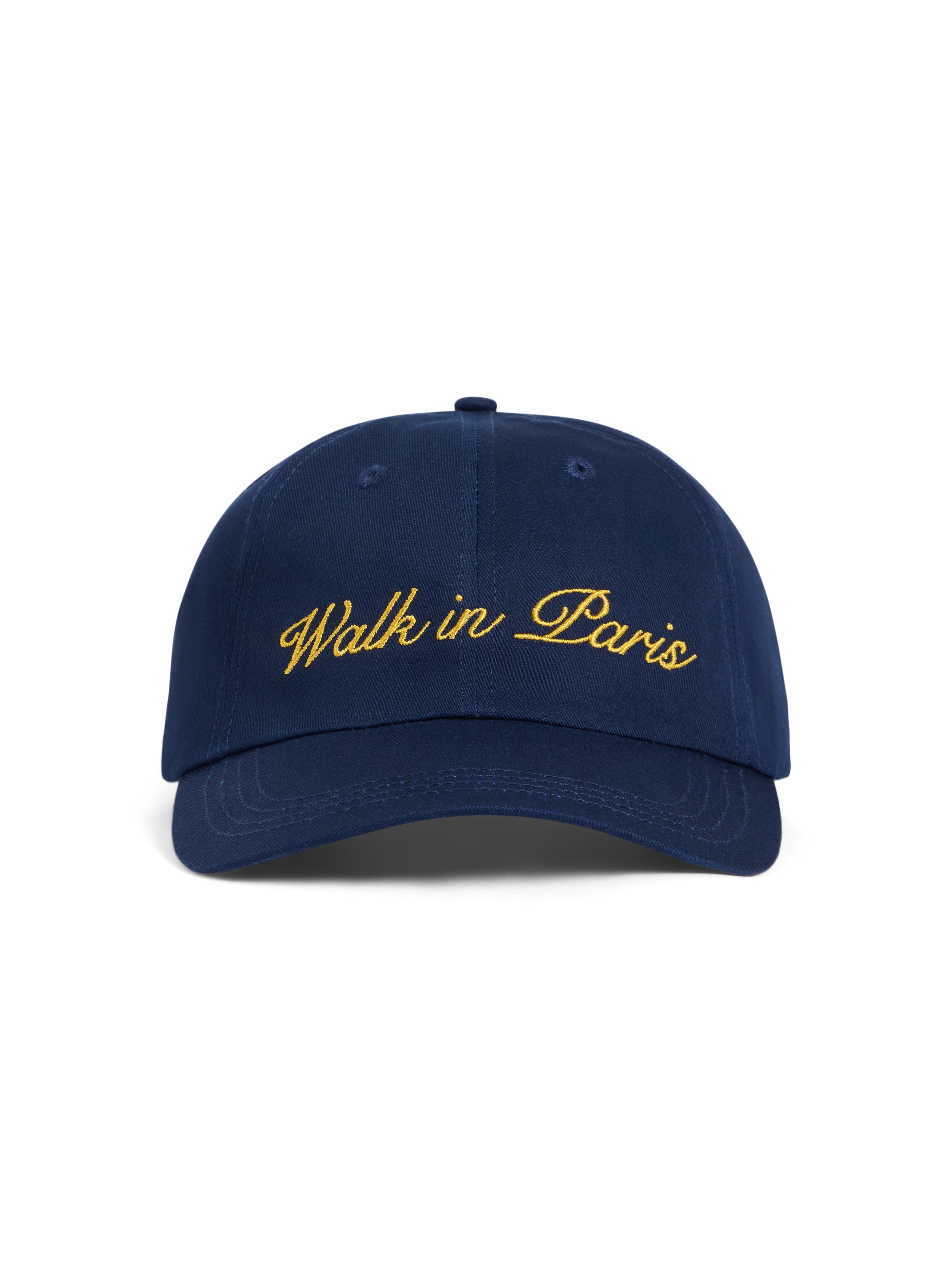 Designed with a structured front panel and signature embroidery, this cap features the iconic “Walk in Paris” logo embroidered in green on a contrasting white front panel. The Navy blue cap delivers a clean yet bold aesthetic, perfect for elevating any casual outfit.