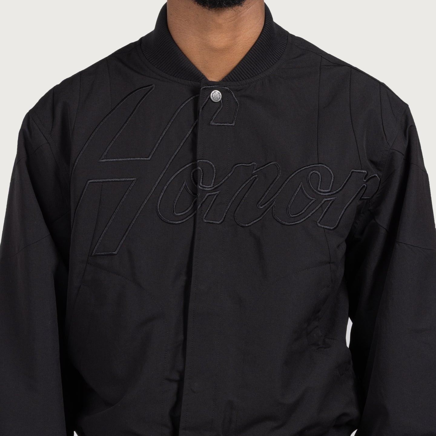 Honor the Gift Nylon Bomber – Black Make a statement with the Honor the Gift Nylon Bomber, a modern take on a timeless streetwear classic. Built with 100% cotton luxe fabric in a standard fit, this jacket delivers both structure and comfort. Its bold “Honor” front embroidery applique gives it...