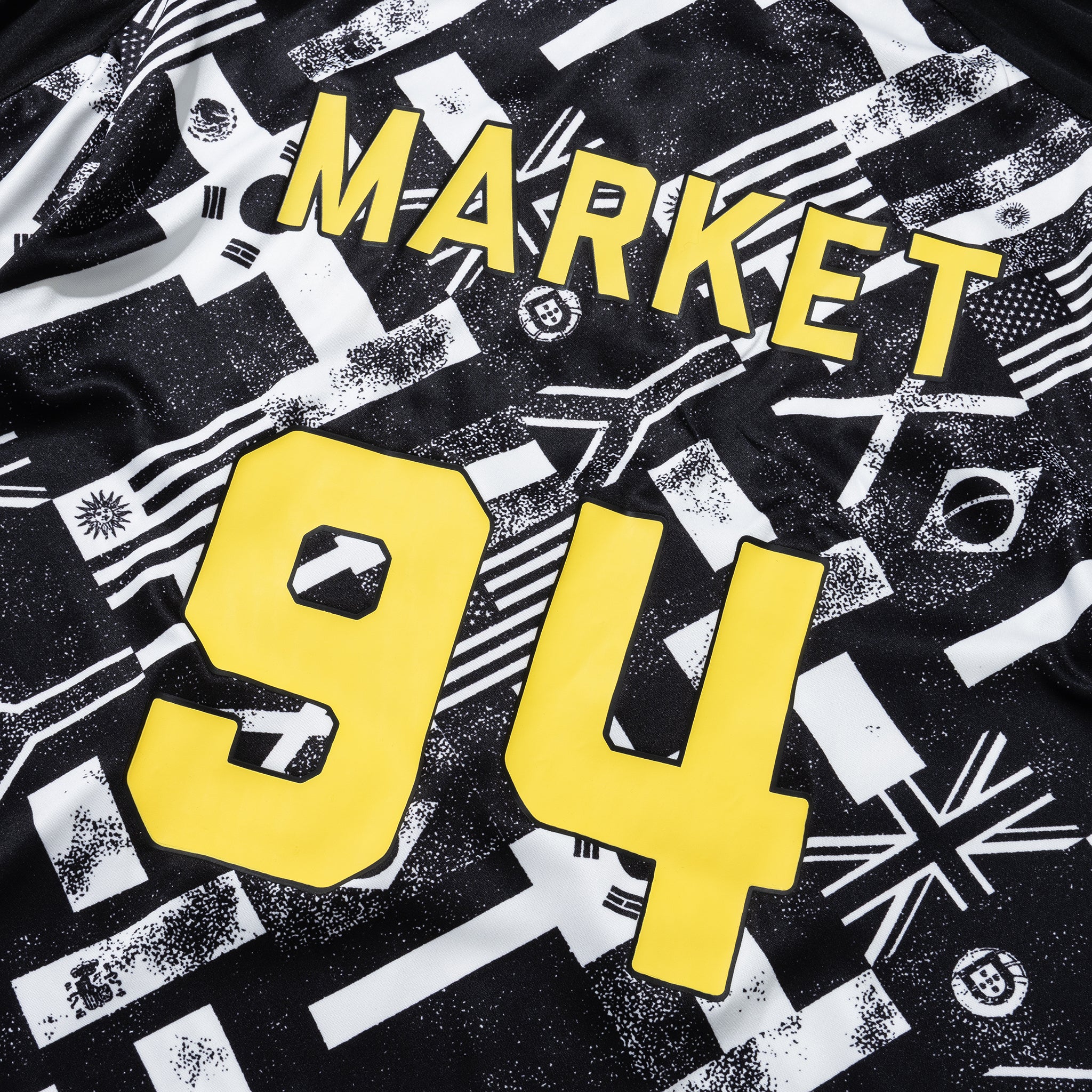 The Market Smiley International Flags SS Soccer Jersey brings together sports heritage and bold streetwear design. Featuring an all-over international flags print on a sleek black and white base, this jersey delivers standout style from every angle. The iconic Smiley detail and varsity-inspired “MARKET” lettering across the chest add signature character.
