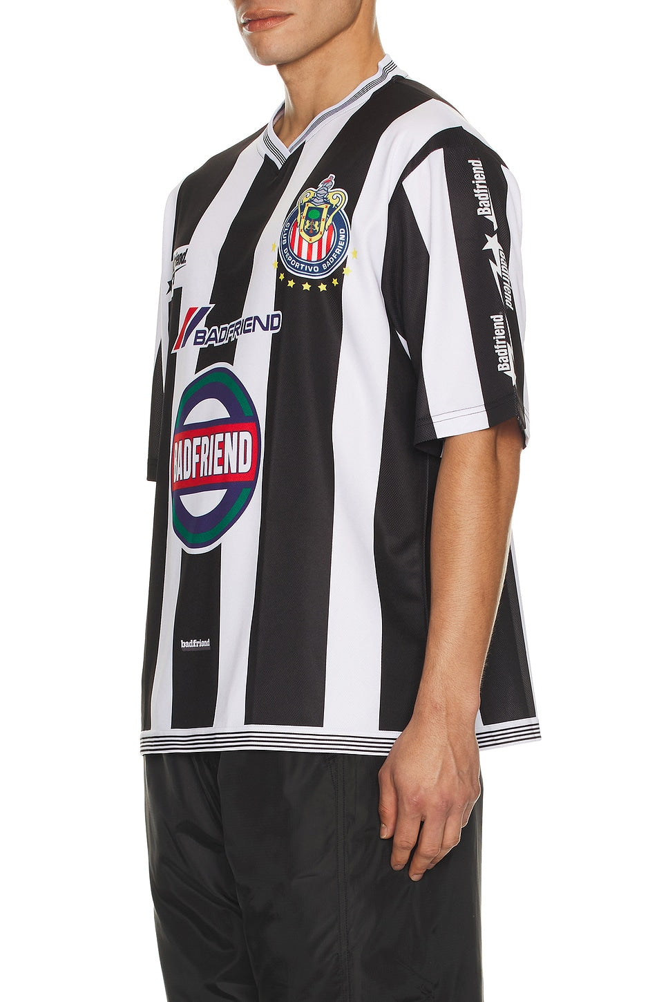BadFriend Soccer Jersey – Black / White A lightweight performance-inspired jersey built with a bold BadFriend attitude. Designed with breathable polyester, an athletic silhouette, and graphic logo detailing throughout. Comfortable, durable, and ready for everyday wear — on or off the field. Details: 100% polyester Lightweight jersey fabric Graphic logo...