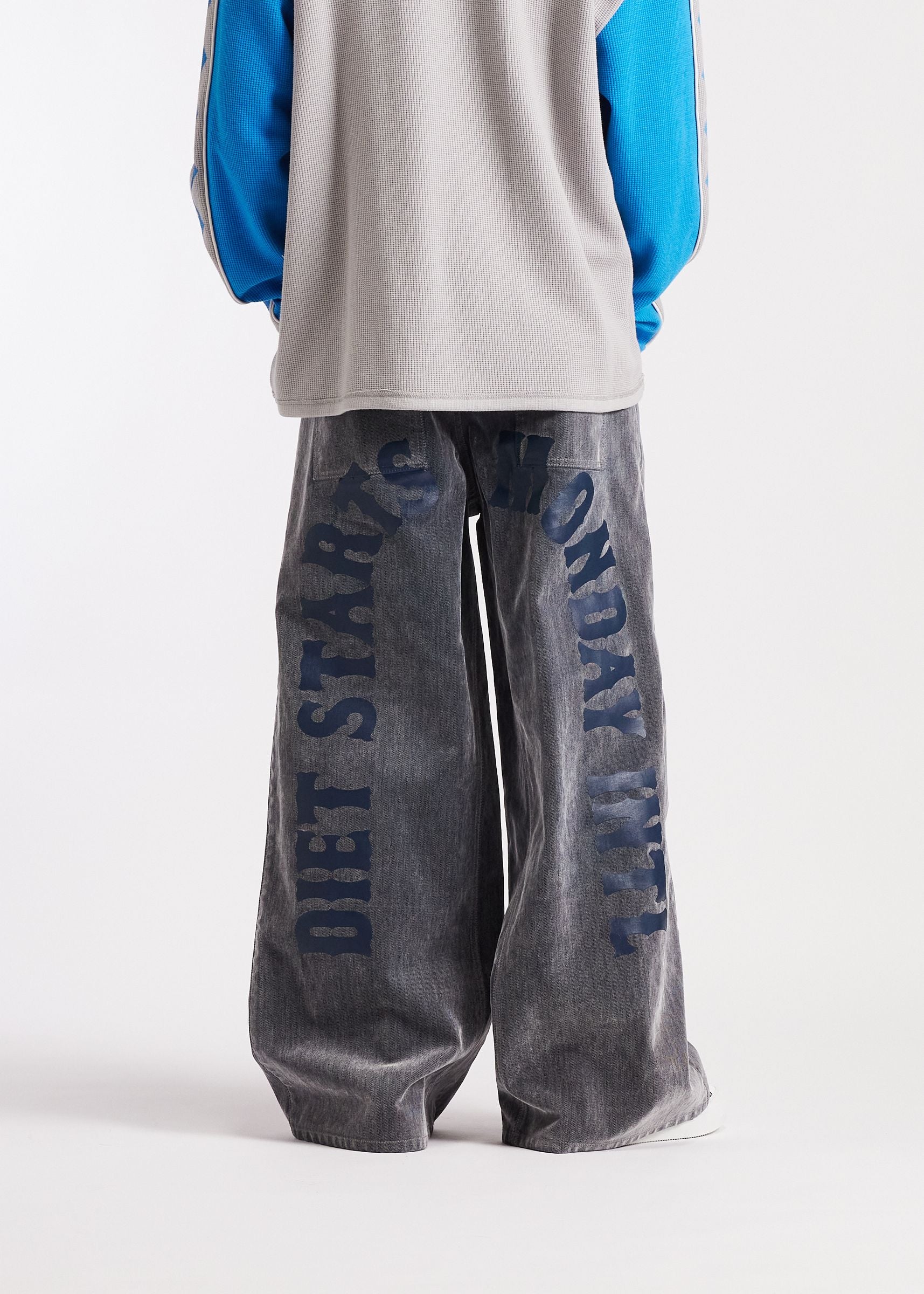 Diet Starts Monday Arch McLeod Jean – Slate Gray Streetwear meets structure with the Diet Starts Monday Arch McLeod Jean. These wide-leg trousers redefine the classic relaxed silhouette with a heavyweight, slate-washed textured fabric that brings a premium, vintage corduroy feel. The bold rear graphics and signature yellow brand patch...