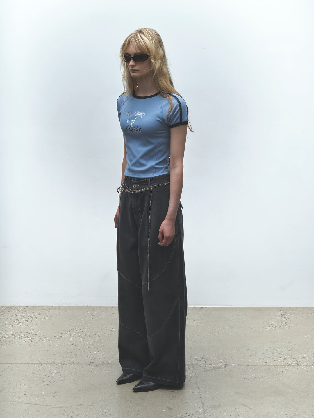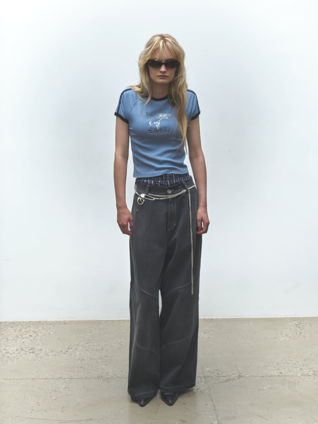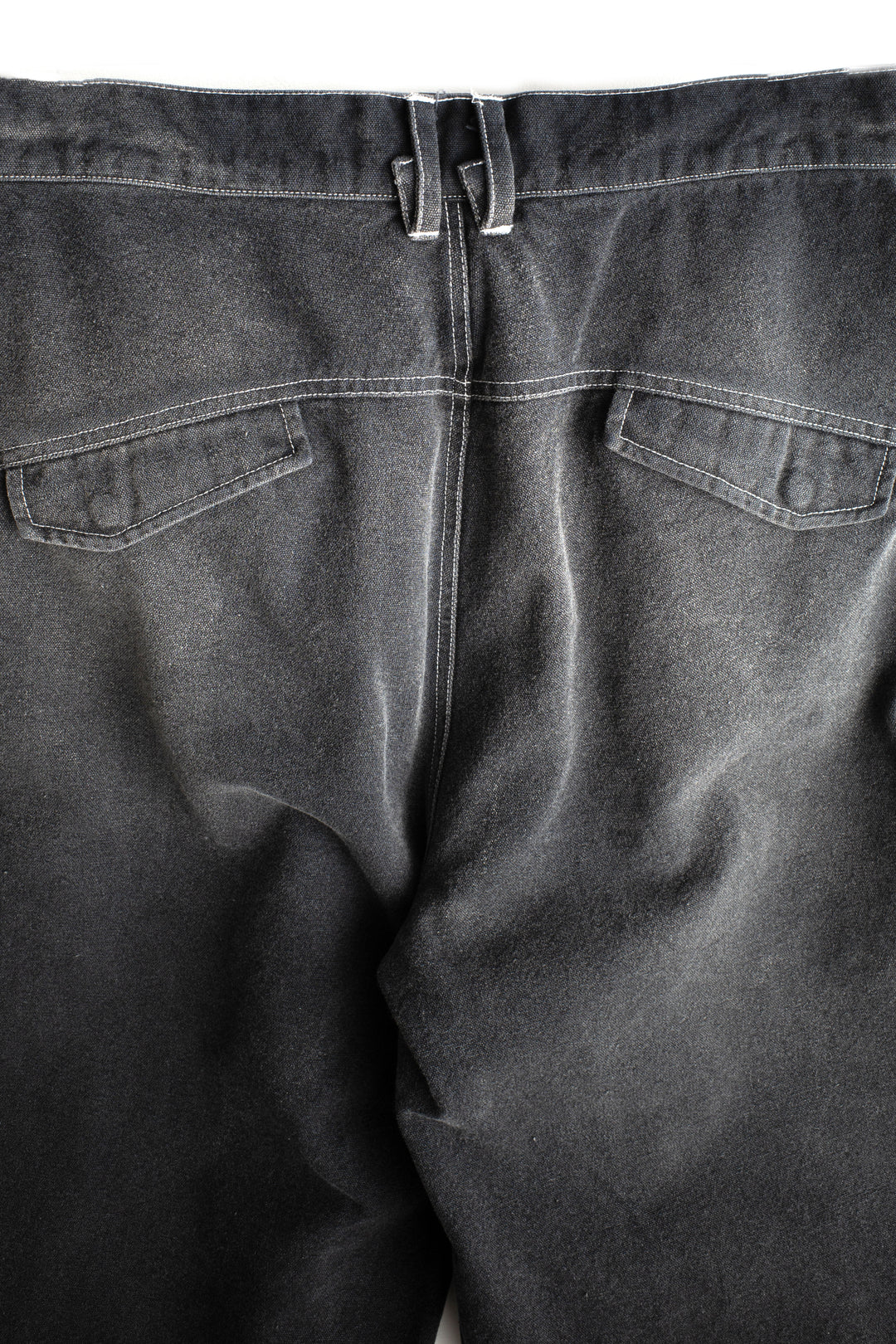 The DENIM SLANT PANT in Washed Black is designed for a bold, relaxed style. Crafted from 100% heavy-weight cotton canvas with sun-bleached fading and contrast stitching, these pants make a statement with a super wide, baggy fit. Featuring deep front pleats and a slanted knee panel for structure and shape, they combine comfort with modern streetwear aesthetics. Perfect for layering or pairing with tees and tanks, these pants deliver effortless style with every wear.