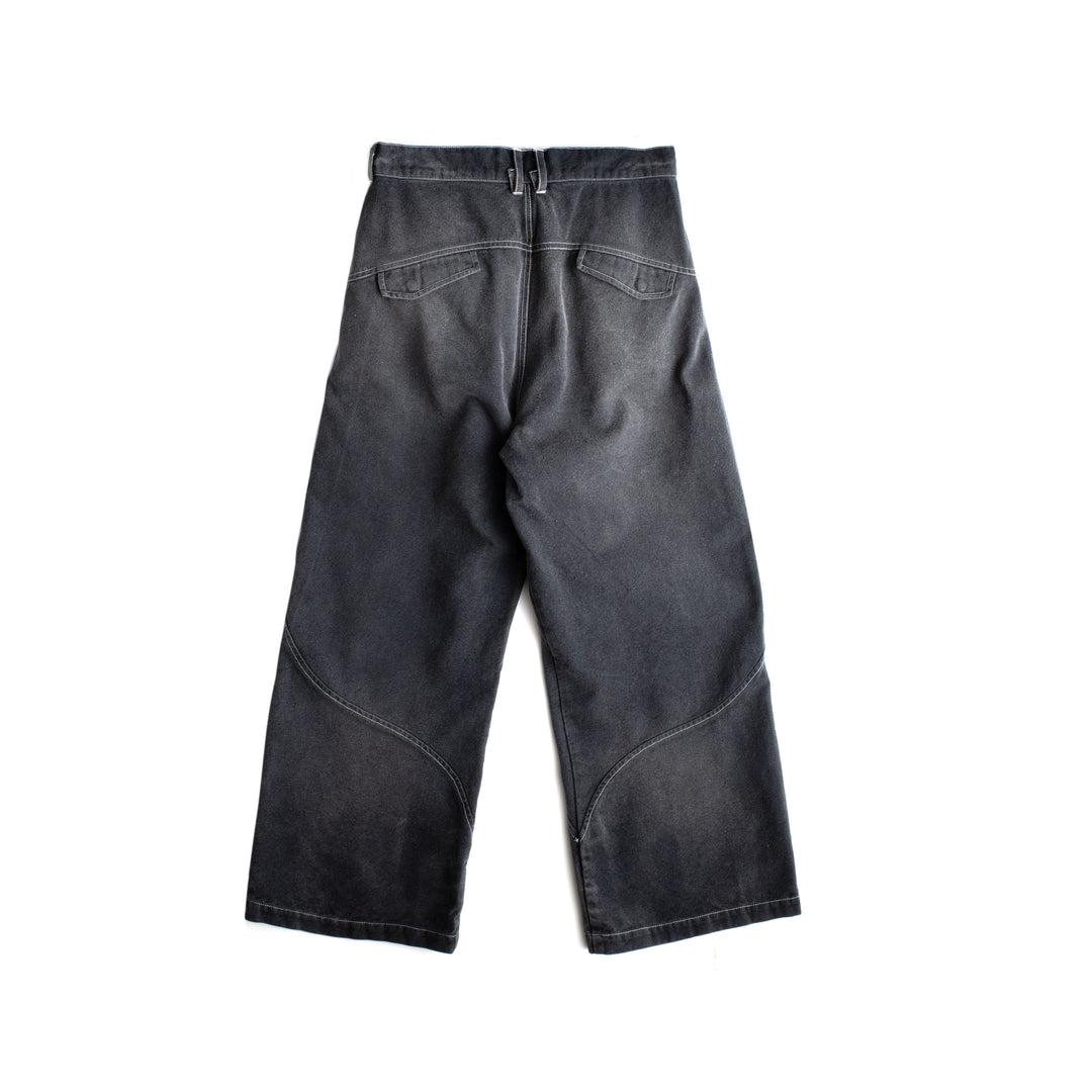 Jungles Jungles Denim Slant Pant – Washed Black The DENIM SLANT PANT in Washed Black is designed for a bold, relaxed style. Crafted from 100% heavy-weight cotton canvas with sun-bleached fading and contrast stitching, these pants make a statement with a super wide, baggy fit. Featuring deep front pleats and...