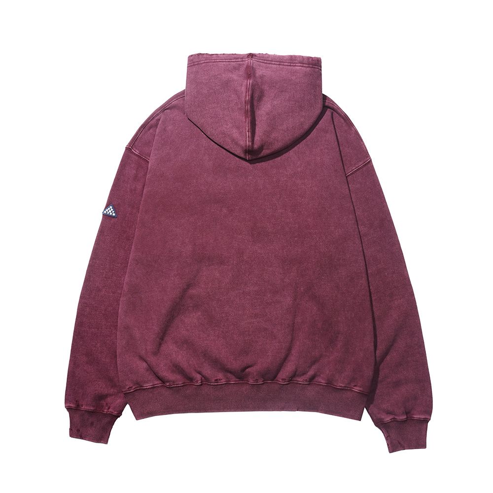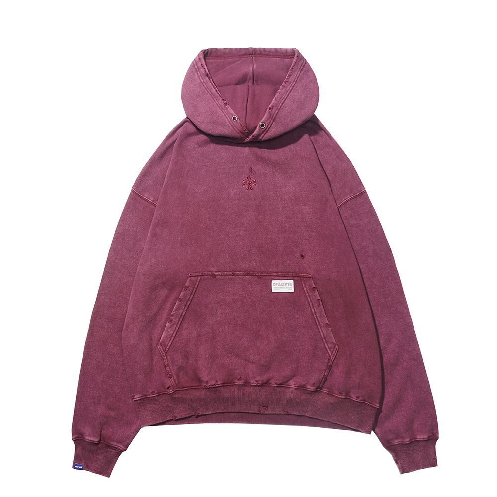 A vintage-inspired essential built for comfort and attitude. The Deva States Distressed Hoodie features a rich burgundy tone with a worn-in wash and raw detailing for a perfectly aged streetwear look.