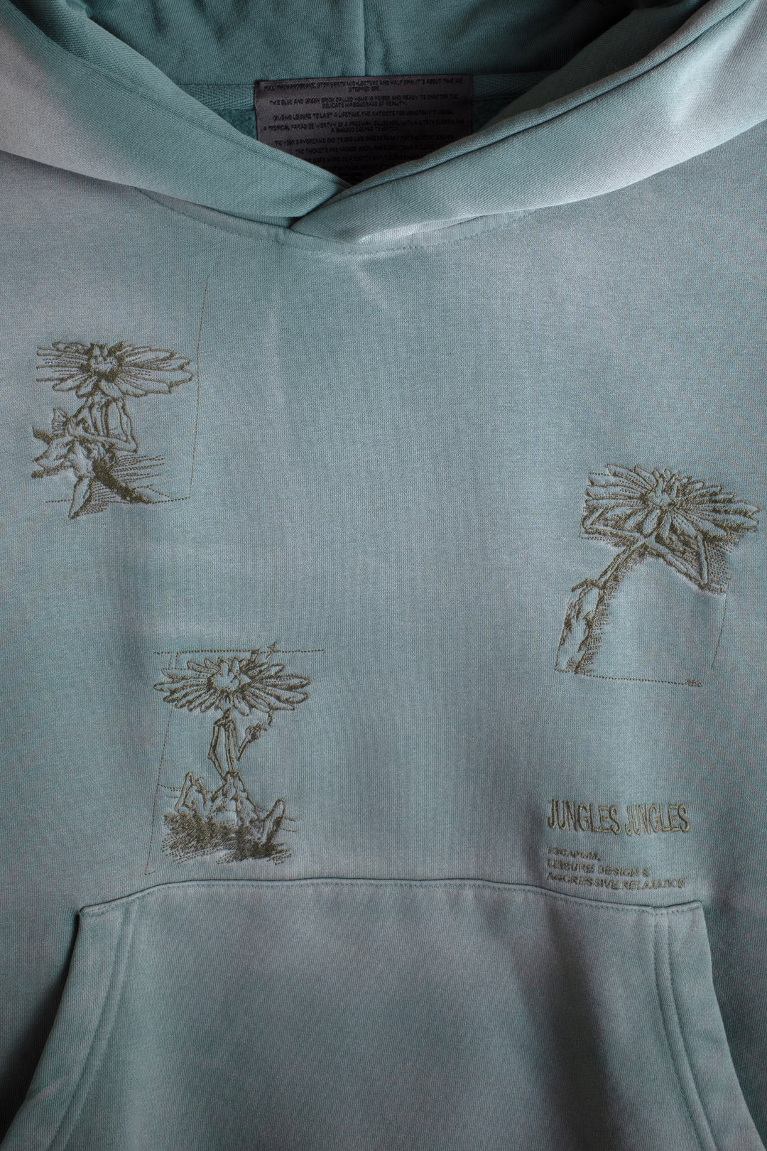 “Hard times never last.” The Jungles Jungles Hard Times Hoodie brings this message to life with embroidered detail on a premium heavyweight hoodie. Featuring heavy sun fading for a worn-in, vintage feel, this hoodie is crafted from 400gsm fleece and designed with a boxy fit and dropped shoulders for a relaxed, oversized silhouette.