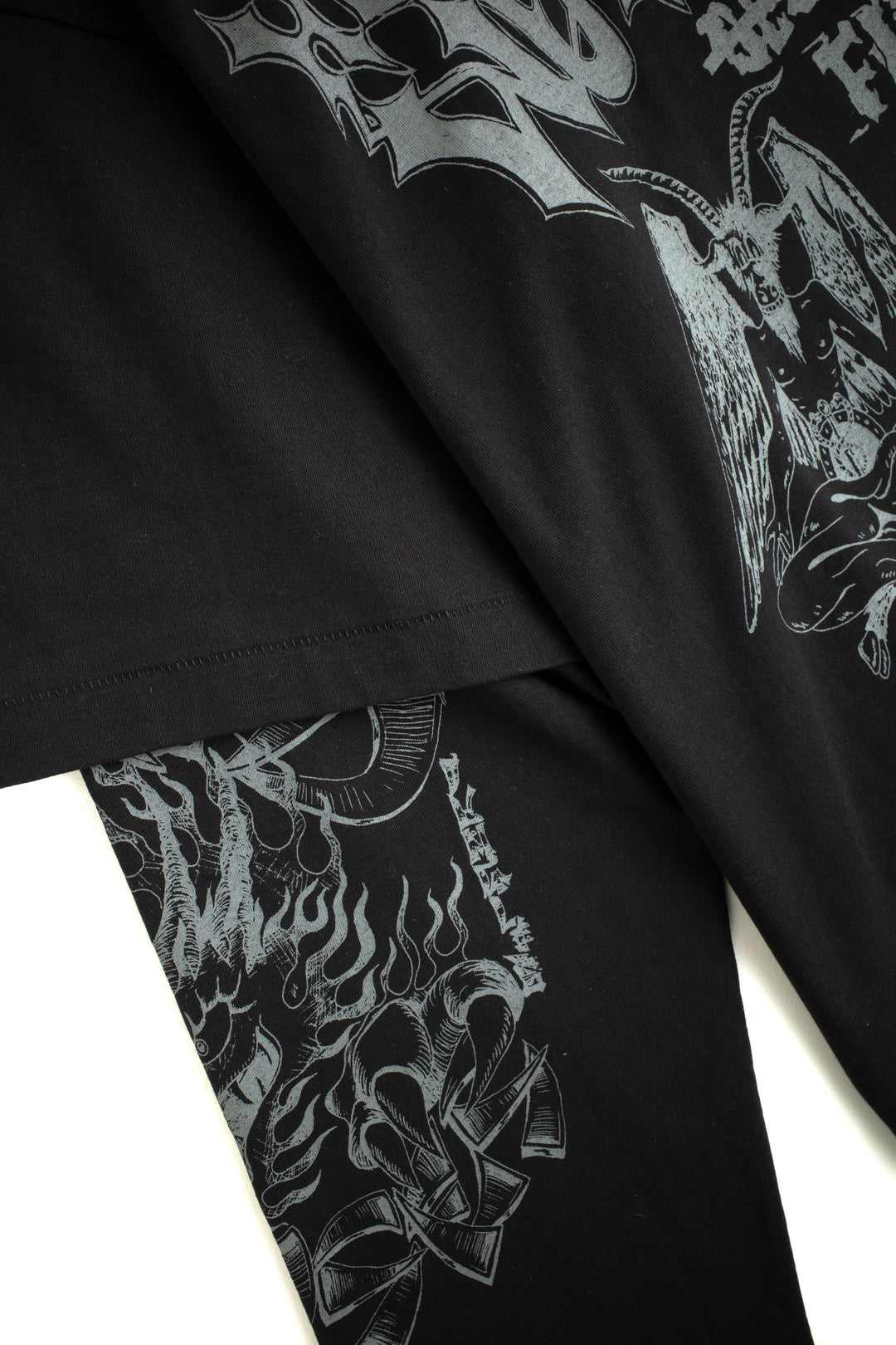 Loud noises. Skulls and flames. A bold graphic mix that brings attitude to a classic long sleeve. This piece is made from heavy 220gsm cotton with a super boxy relaxed fit and a double-layer sleeve for extra structure. Front, back, and sleeve prints bring the full visual hit.