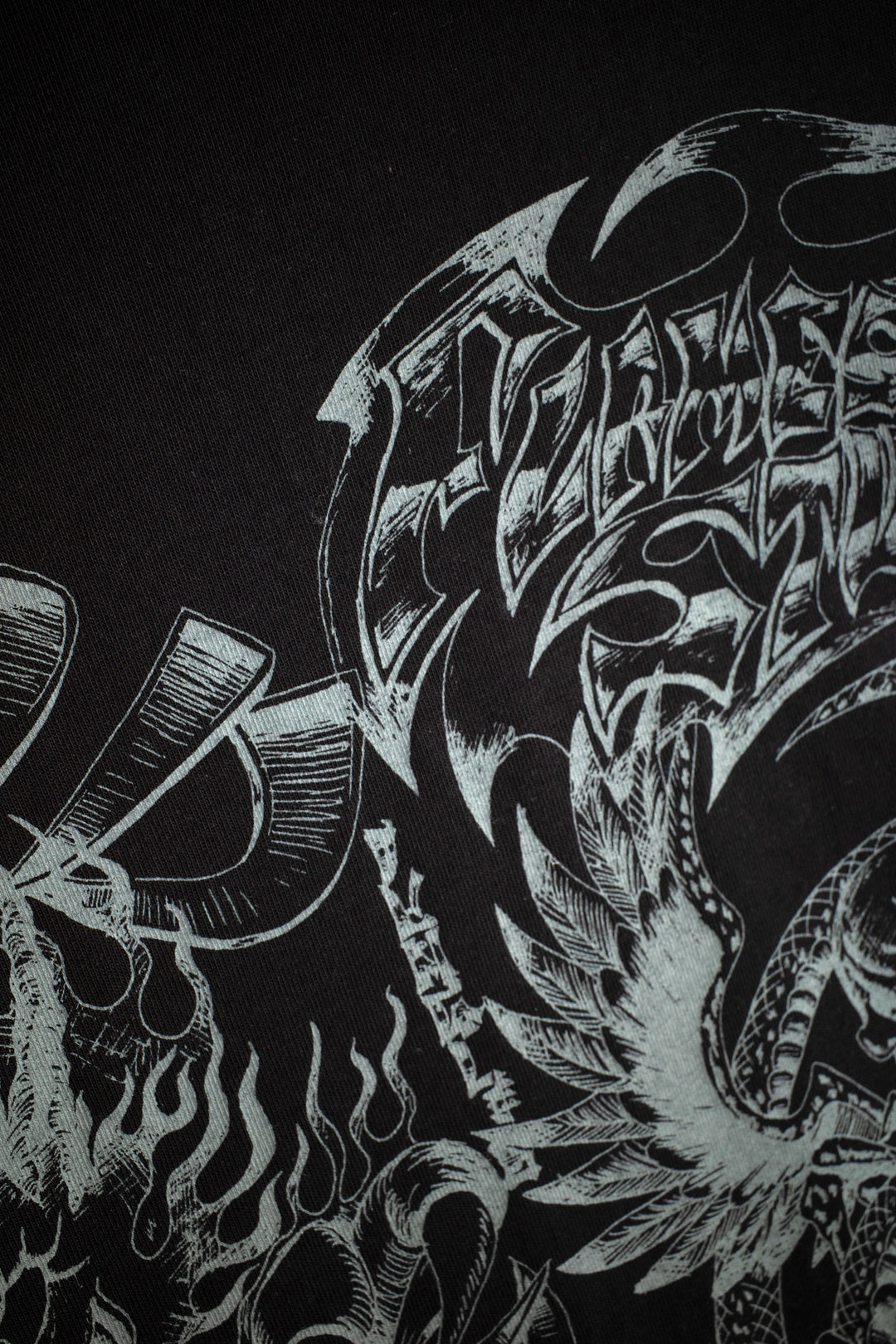 • Graphics: Heavy prints on front, back, and sleeves