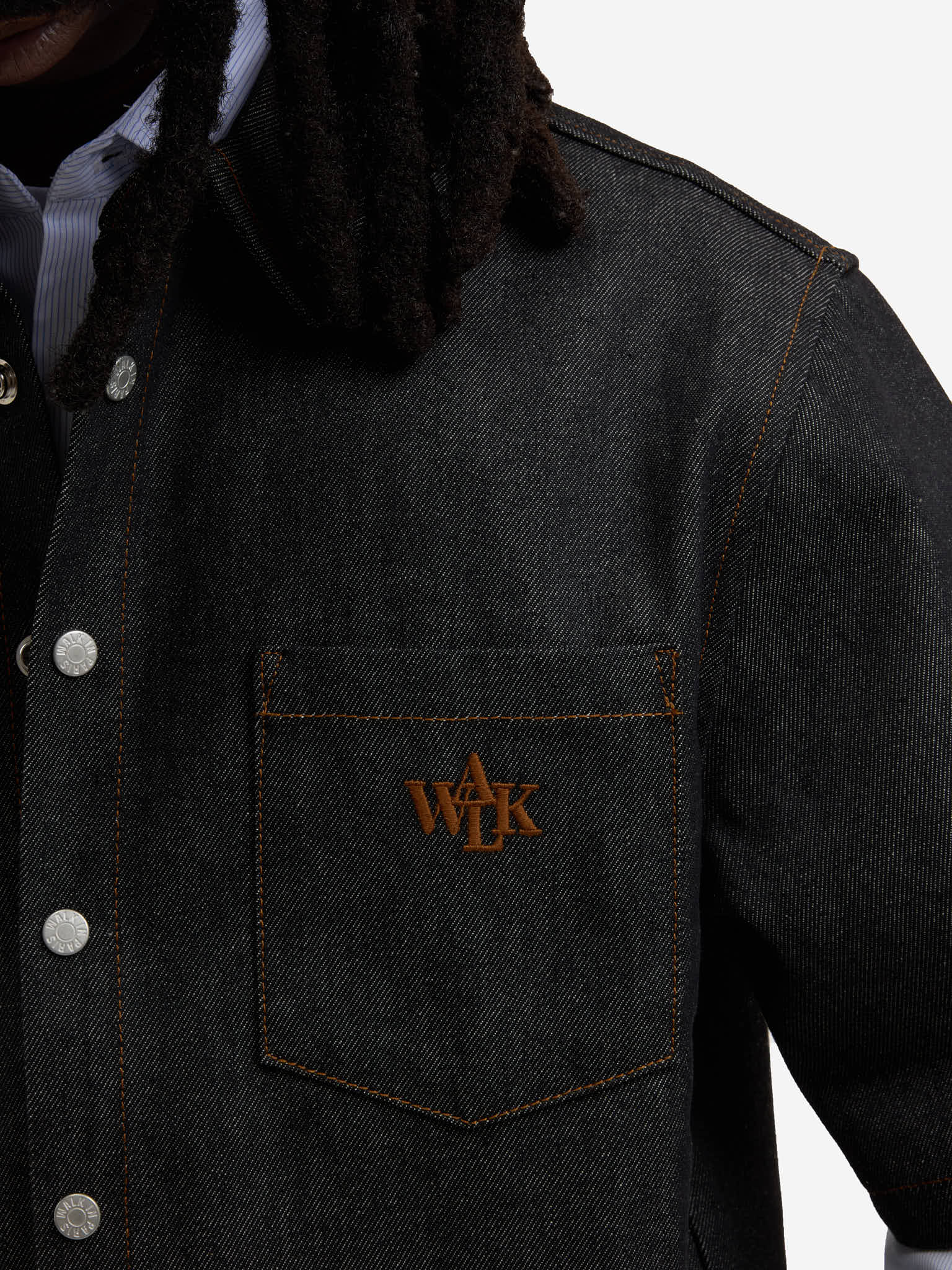 Crafted from high-quality linen, it offers a lightweight, breathable feel — perfect for both casual and smart styling. The signature brown “WALK” embroidery on the chest adds a subtle yet distinctive detail, giving the piece its recognizable identity.