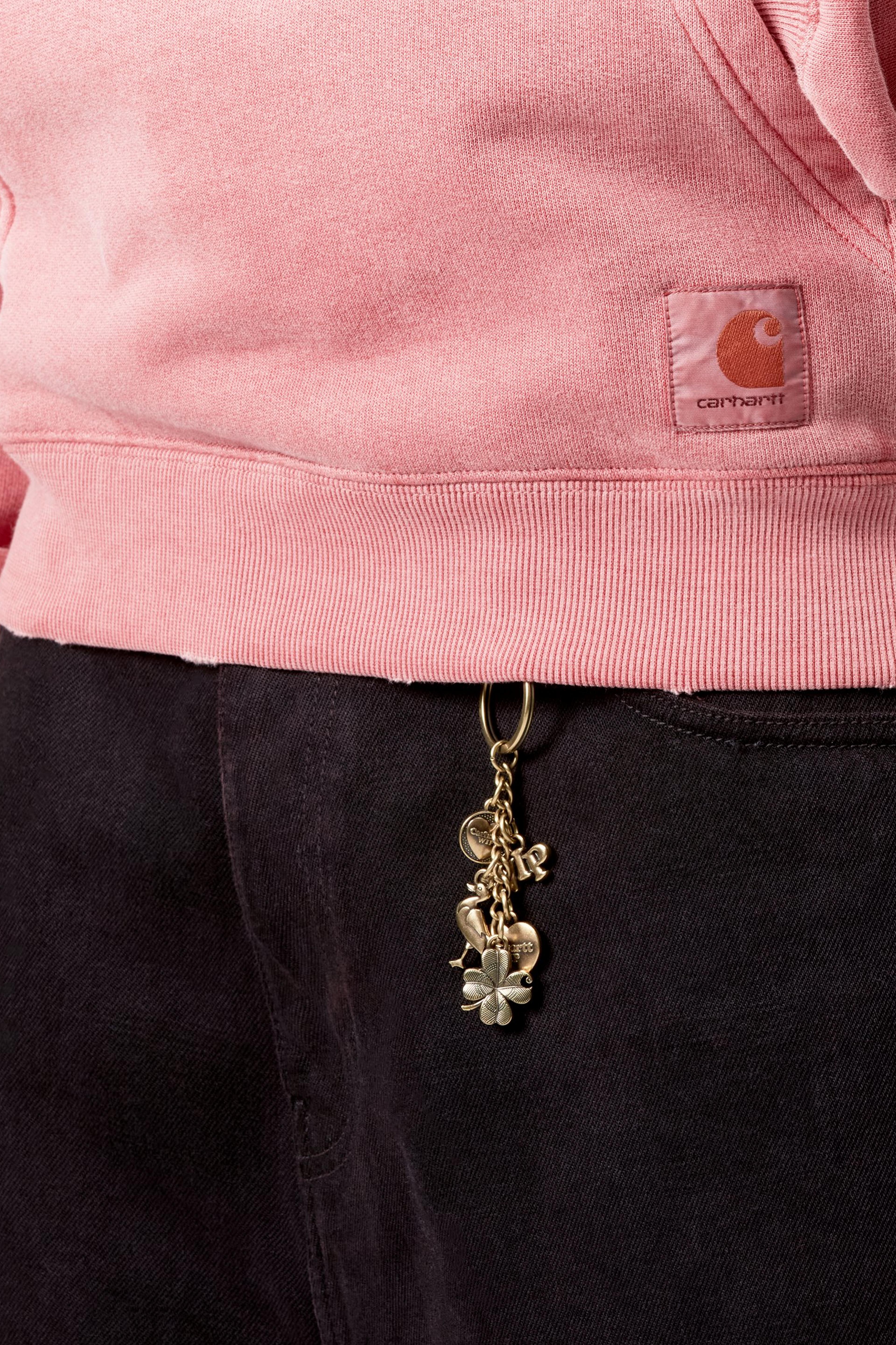 The Carhartt WIP Charms Keychain is crafted from durable zinc alloy with antique-inspired plating. It features five graphic pendants, each embossed with Carhartt branding, combining functionality with a stylish, collectible look.