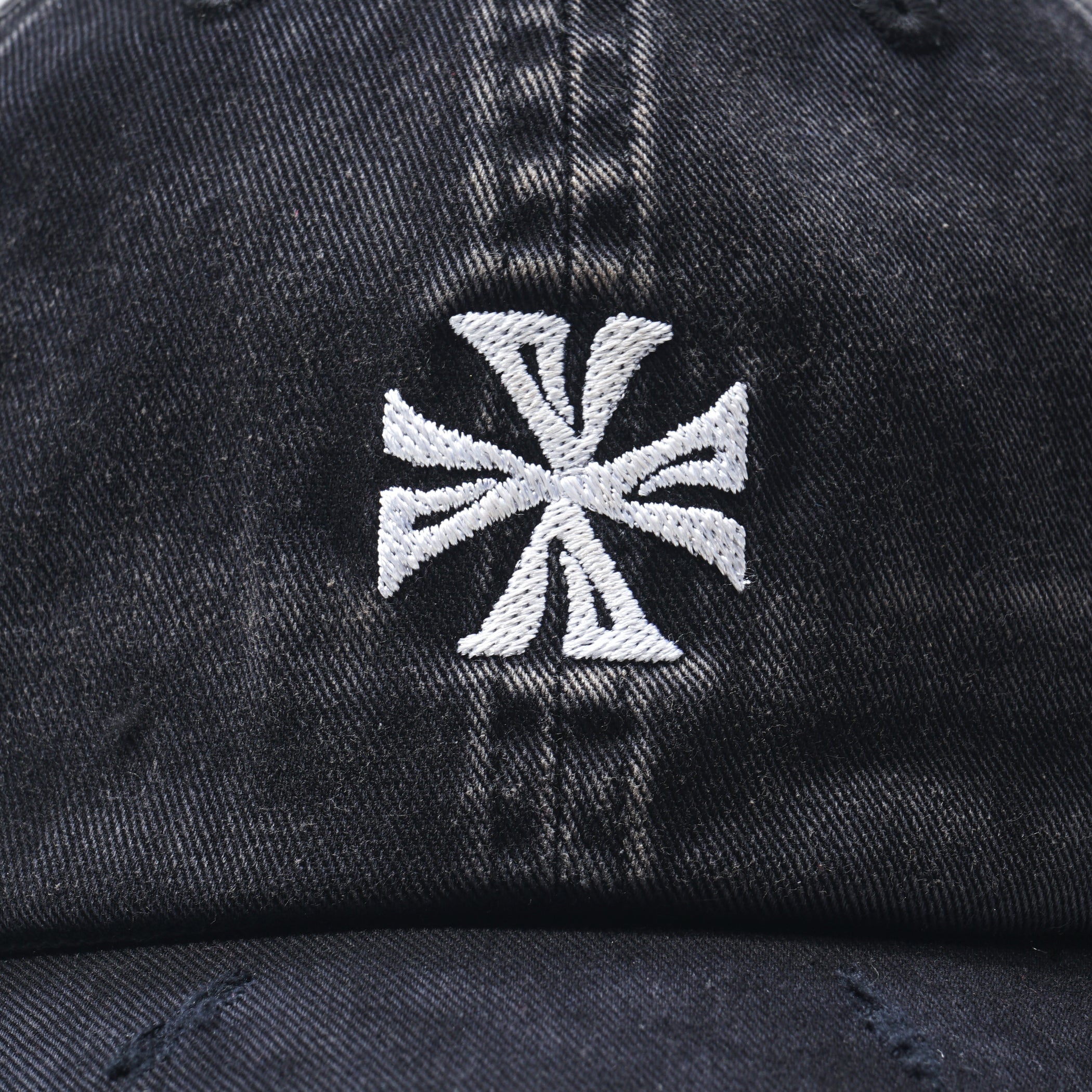 The Cross Distressed Strapback Cap brings a vintage, worn-in feel to your everyday look. With its washed black finish and embroidered details, it’s the perfect finishing piece for any street-ready fit.