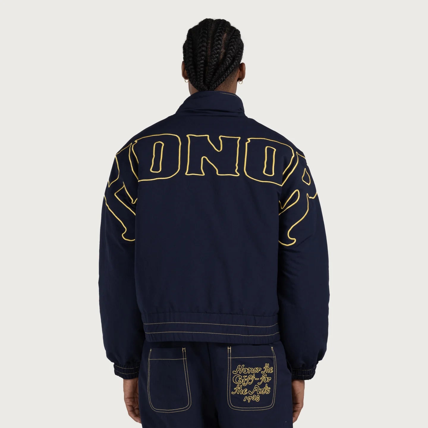 Honor The Gift Honor Puff Jacket – Navy Stay warm without compromising on style with the Honor The Gift Puff Jacket in navy. Designed with an athletic fit and crafted from 100% cotton, it features raw-edge sleeve and bottom openings, a double-layer hood, and “Why Not” embroidery detail. True to size...