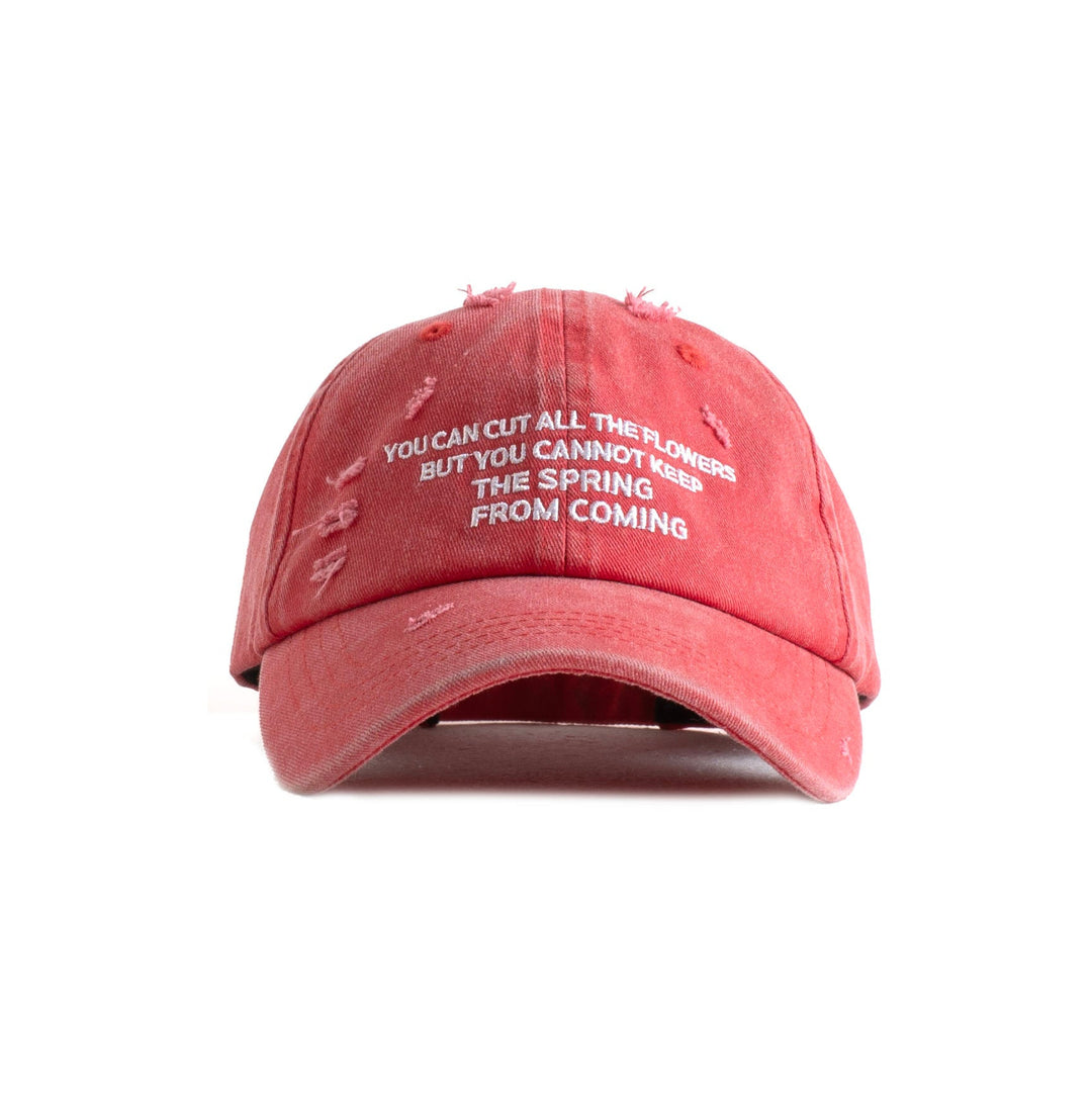 Jungles Jungles Spring Cap – Washed Red Inspired by Pablo Neruda’s timeless words, “You can cut all the flowers, but you cannot keep spring from coming,” the Spring Cap celebrates resilience, renewal, and the beauty of growth. Just like spring always returns, this piece embodies strength through adversity and hope...