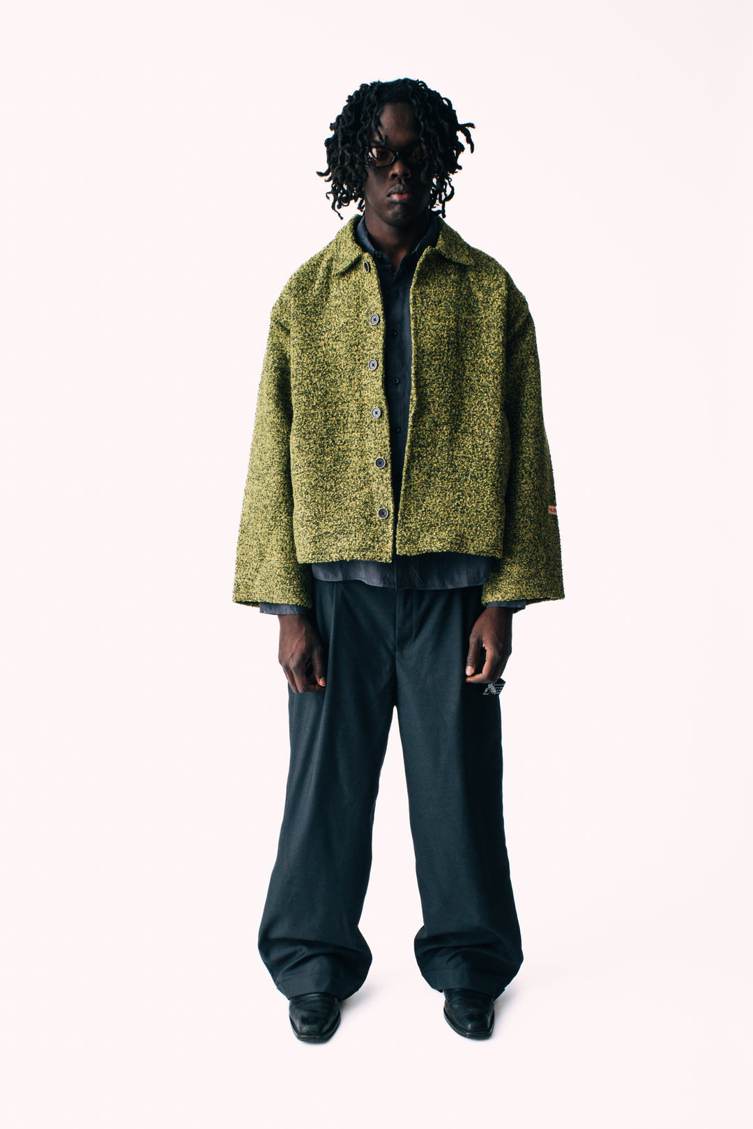 The Static Jacket stands out with its intricate heavyweight bouclé fabric that gives texture, depth, and structure. Designed for a relaxed oversized fit, it’s fully lined for comfort and durability.