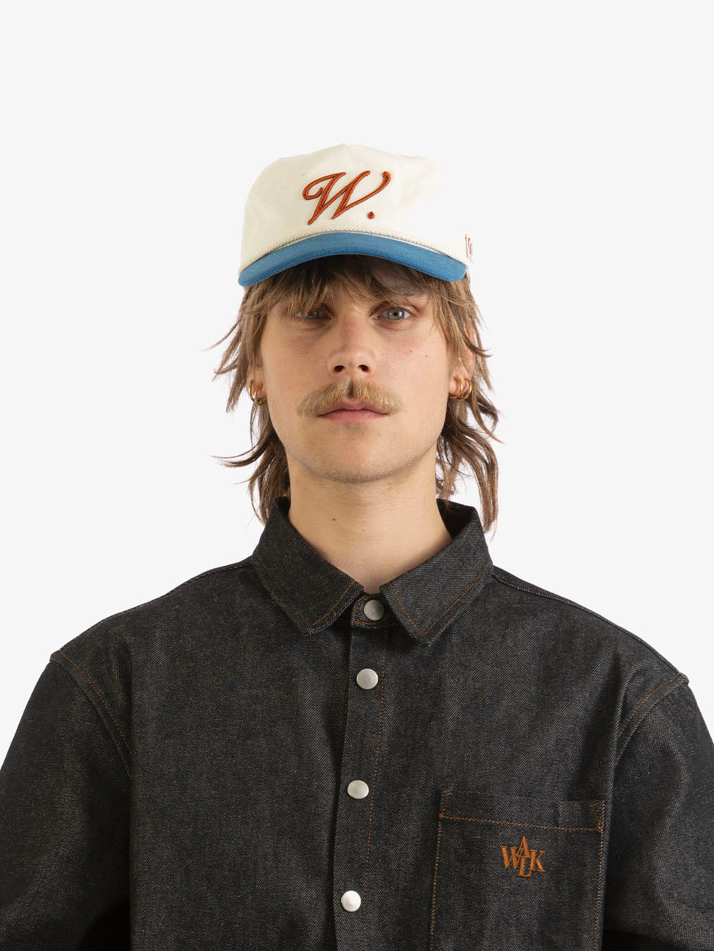 The Walk in Paris Blue Signature Cap combines classic streetwear energy with clean detailing. Designed in blue cotton canvas, it features an embroidered “W.” logo on the front in red and off-white for a bold contrast.
